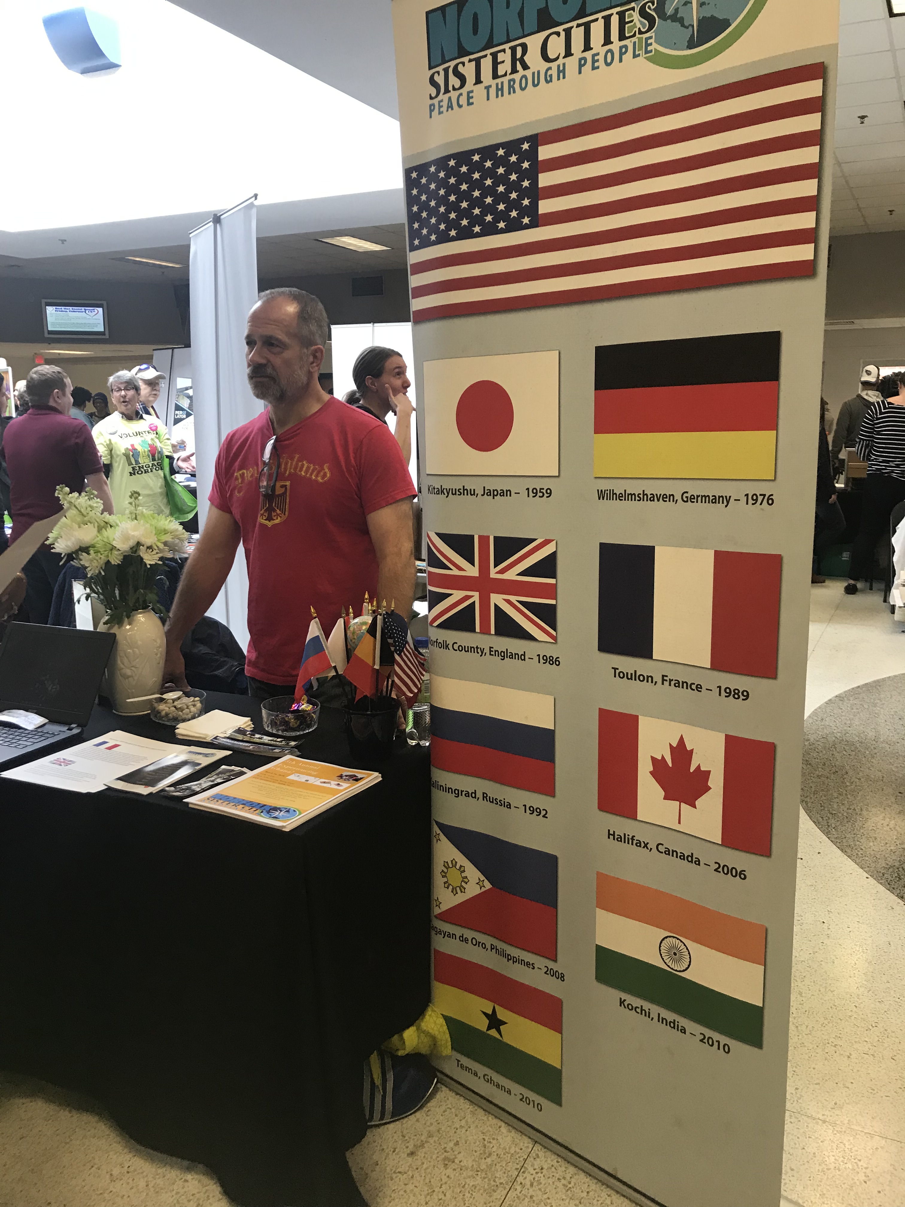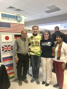 Thank you Councilwoman Andria McClellan for organizing this event. It was the second year Norfolk Sister City Association participated. We experienced great traffic passing by our booth. Our Vice President & Education Committee Chair, Gloria Hagans; Wilhelmshaven, Germany Committee Chair Markus Wegener; Cagayan de Oro, Philippines Committee Chair Harry Acuna and his wife Christine; Tema, Ghana Committee Chair, Sarah Peoples Perry and Board member Alok Verma all helped to man our booth.